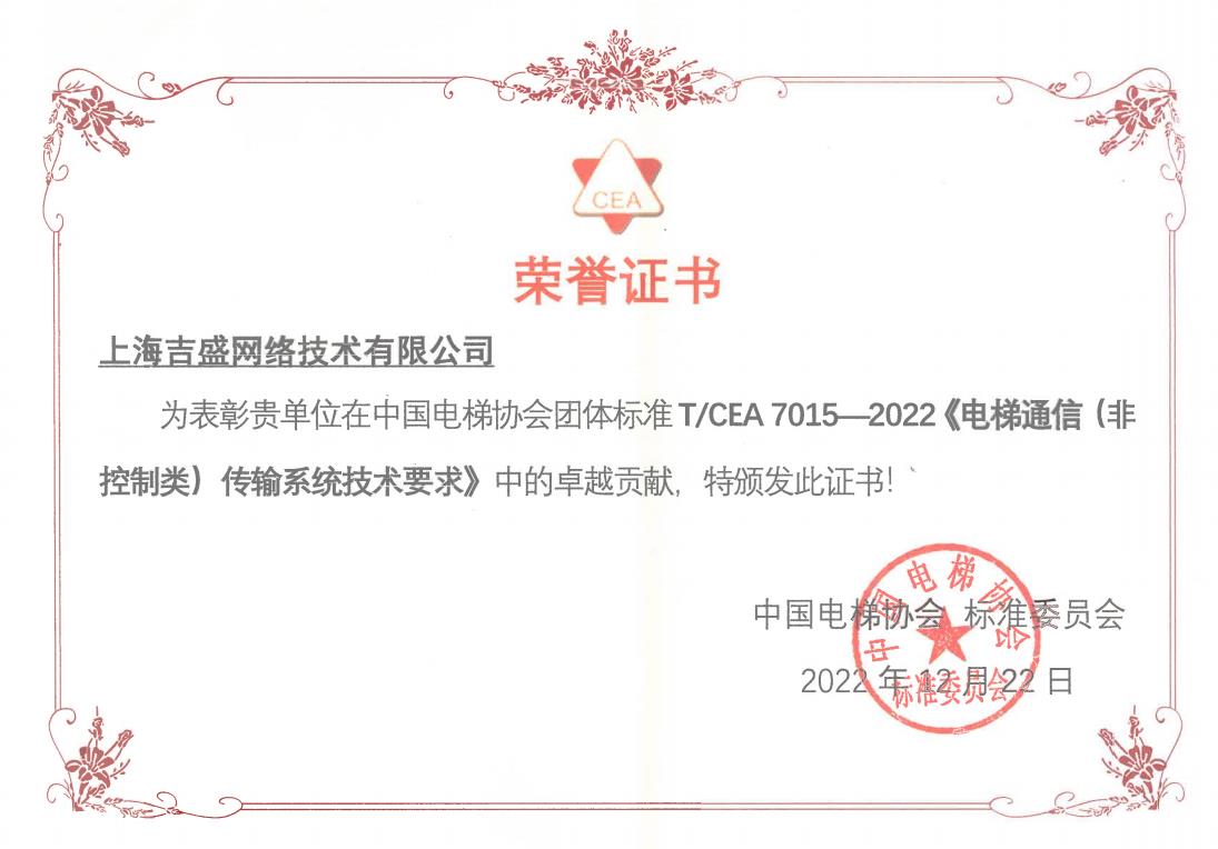 上海吉盛网络技术有限公司荣获中国电梯协会表彰