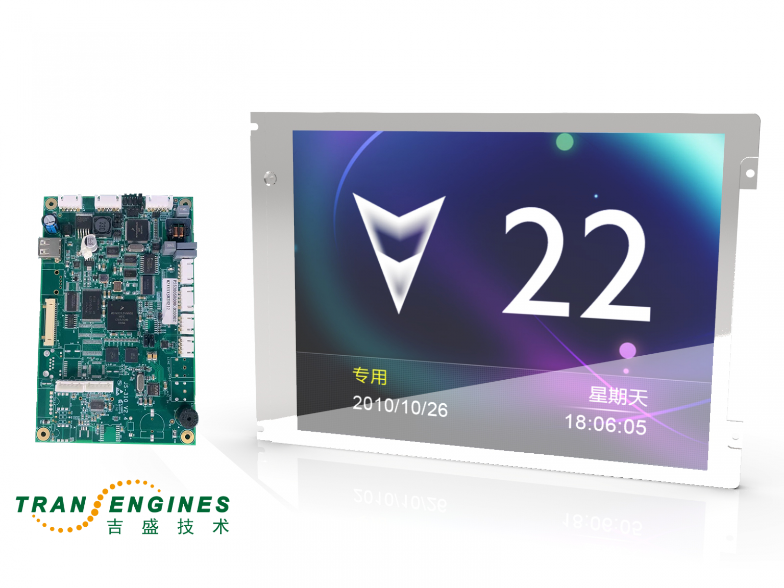 超薄型4.3英寸层站显示LCD(JS-171)安装在壁挂式层站位置指示器内,可显示电梯的运行方向信息和楼层信息,以及一些特殊状态信息(如检修、停用、专用及自动等)。